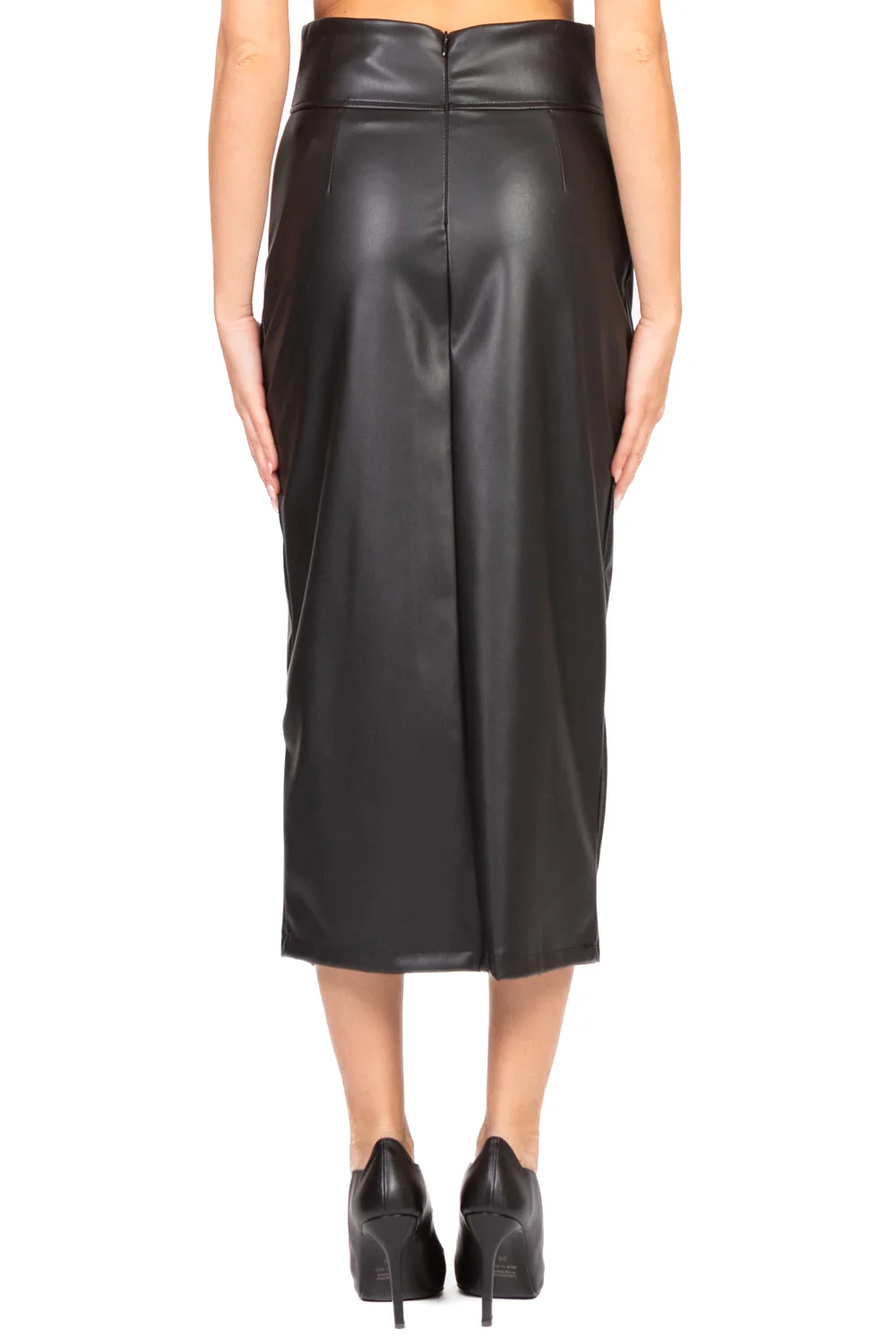 Gonna longuette realizzata in ecopelle effetto pelle liscia, caratterizzata da uno spacco frontale che aggiunge un tocco di sensualità e movimento. La chiusura posteriore con zip garantisce una vestibilità precisa e comoda. Un capo versatile e moderno, perfetto per look eleganti o casual con un tocco rock-chic.