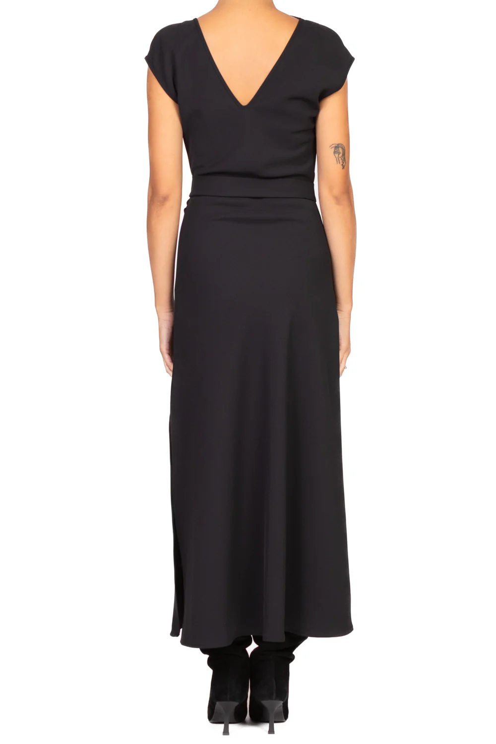 Un capo che unisce femminilità e stile contemporaneo. Questo abito presenta un arricciatura laterale che valorizza la silhouette, accompagnata da una fusciacca regolabile per un fit su misura. Lo scollo a V posteriore aggiunge un tocco di eleganza discreta, mentre la chiusura con zip laterale garantisce una vestibilità perfetta. Ideale per occasioni speciali o serate in cui vuoi sentirti unica.