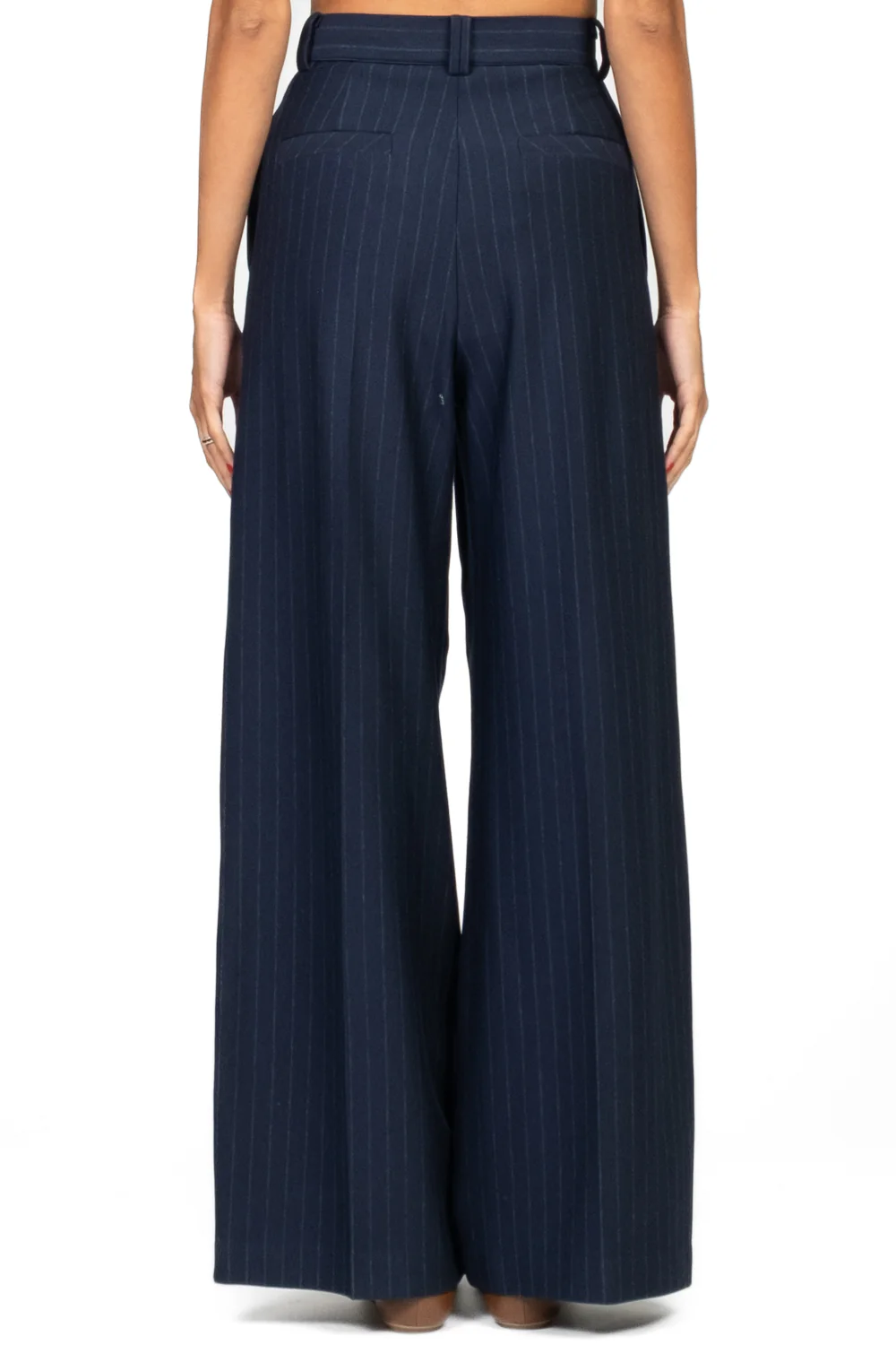 - Linee eleganti e comfort contemporaneo si incontrano in questo pantalone palazzo gessato, realizzato in morbido tessuto punto Milano. La gamba ampia e fluida dona slancio alla figura, mentre le pinces frontali aggiungono struttura e un tocco sartoriale. Le tasche a filo completano il design con discrezione e funzionalità. Un capo versatile, perfetto per look da ufficio o occasioni più formali, da abbinare a camicie o blazer coordinati.