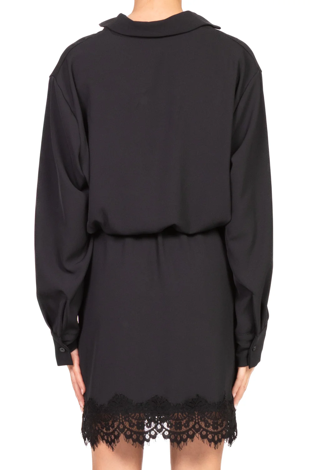 - Femminile e raffinato, questo abito mini modello portafoglio è realizzato in crepe fluido e leggero, con dettagli in pizzo che decorano con eleganza la gonna. L’elastico posteriore in vita assicura una vestibilità comoda e su misura, mentre i passanti valorizzano la silhouette e permettono di definire la cintura in modo versatile. Perfetto per occasioni speciali o per un look sofisticato e contemporaneo.