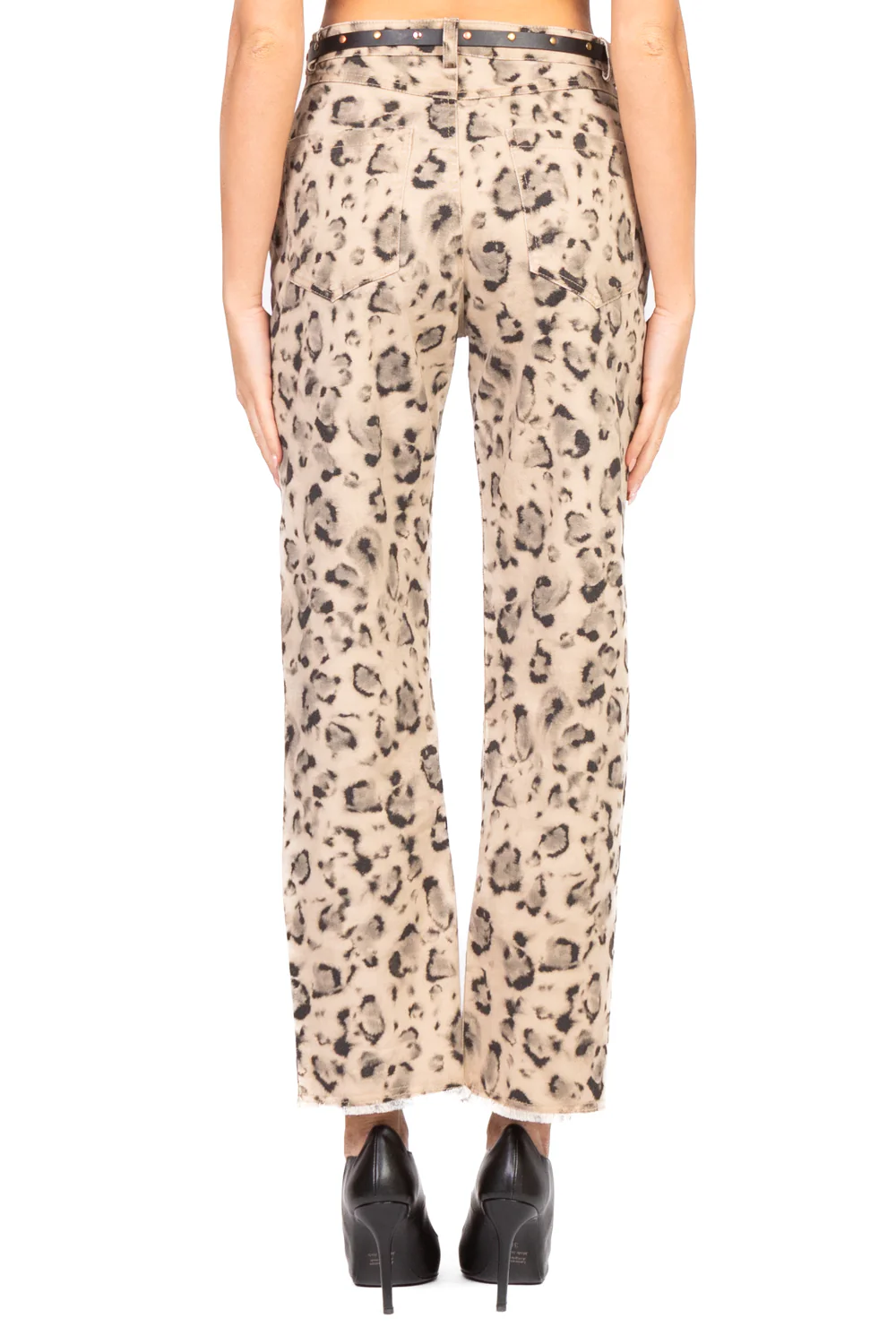 - Un capo audace e di tendenza, questi jeans presentano una stampa animalier che dona carattere e personalità al look. La gamba dritta con orlo sfrangiato aggiunge un tocco casual e contemporaneo, mentre la cintura in vita valorizza la silhouette. Completi di 5 tasche e chiusura con zip e bottone, sono perfetti per creare outfit originali e alla moda, da abbinare a top neutri o capi basici.