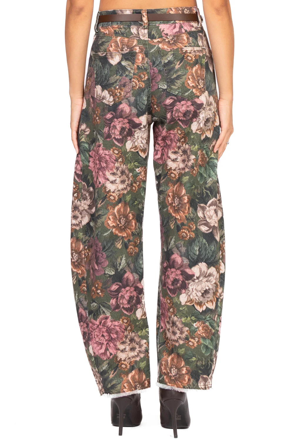 Tensione In - Jeans barrel floreale con cintura Art. W25P158