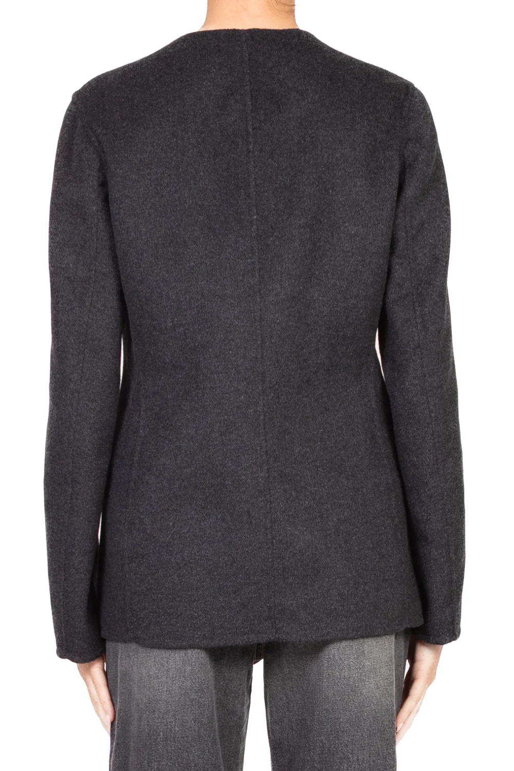 Giacca hand made dal design ricercato, impreziosita da applicazioni gioiello e delicate piume che donano un tocco di eleganza teatrale e contemporanea. Lo scollo a V profondo valorizza la figura e si chiude con un discreto bottone a clip, mantenendo una linea pulita e sofisticata. I piccoli taschini frontali aggiungono un dettaglio funzionale e decorativo, mentre le maniche foderate assicurano comfort e una vestibilità impeccabile. Un capo esclusivo, perfetto per occasioni speciali o per dare carattere a un look da sera.