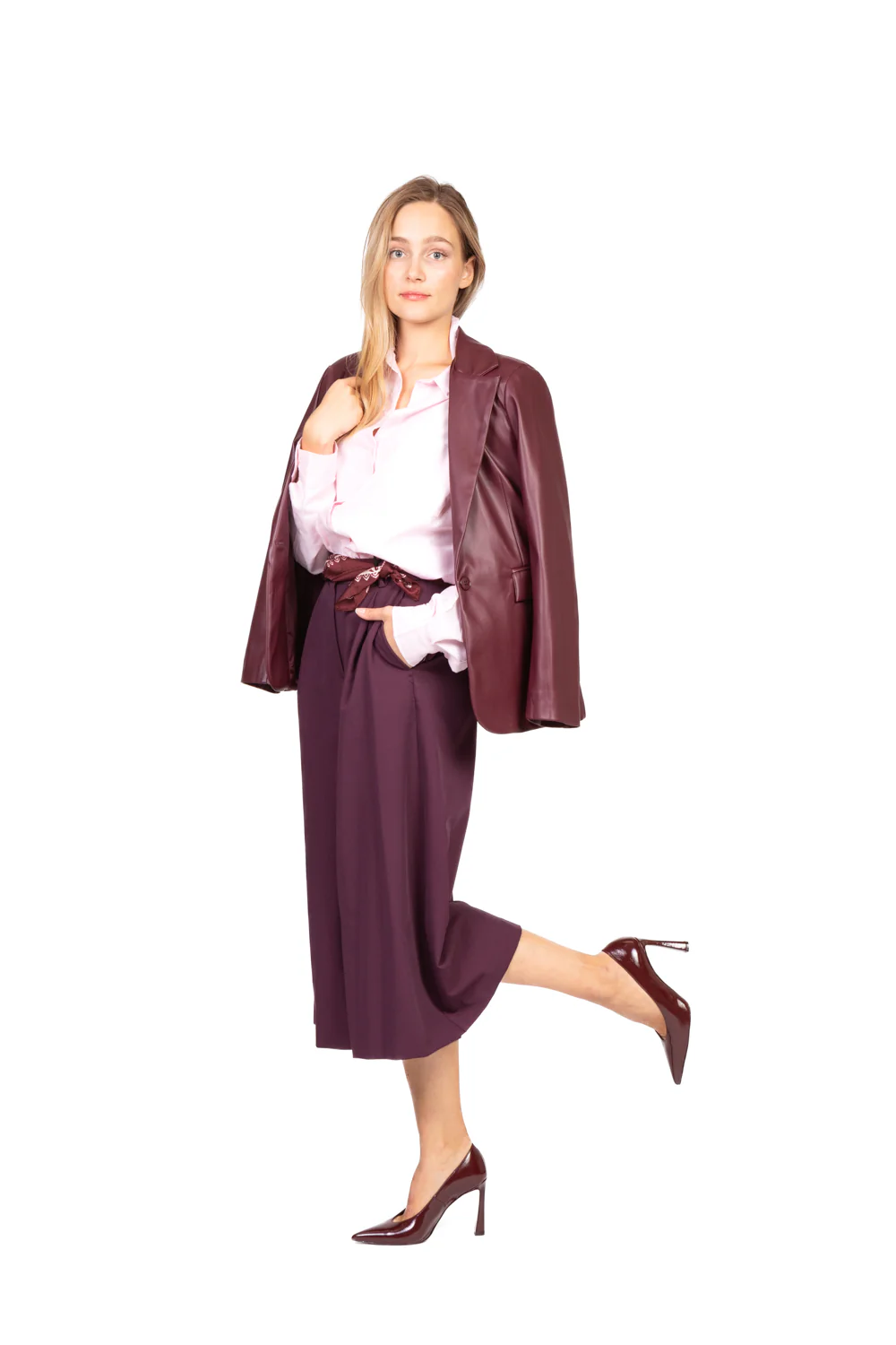 Questa pantagonna unisce comfort e stile con il suo design sofisticato. Dotata di pinces frontali per una linea strutturata, presenta tasche laterali funzionali e taschini posteriori finti che arricchiscono il dettaglio estetico. La chiusura con zip e bottone garantisce praticità e una vestibilità perfetta. Ideale per look raffinati e versatili, dal giorno alla sera.